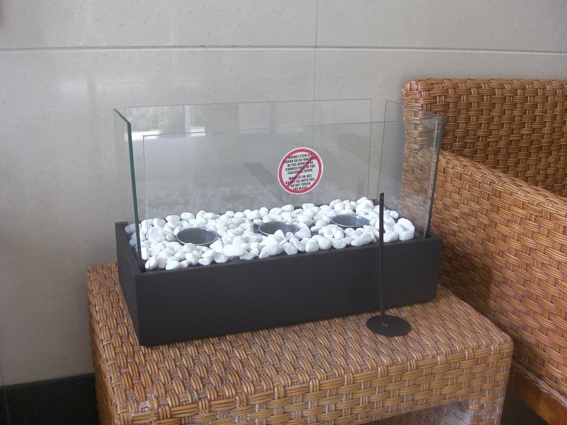 Ovaj elegantni stolni kamin izrađen je od baze od nehrđajućeg čelika i bočnih stijenki od kaljenog stakla.